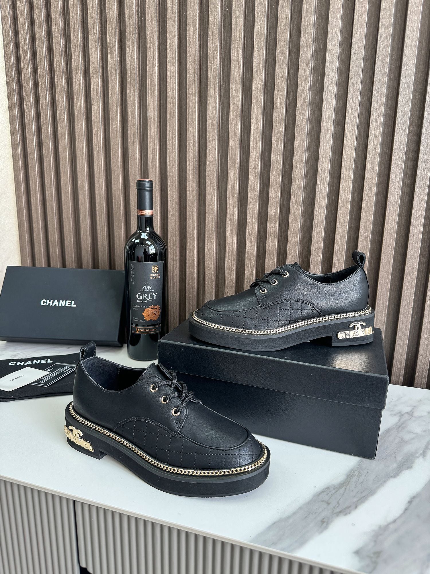 Fai un passo di eleganza con Chanel Quilted Chain Loafers.
